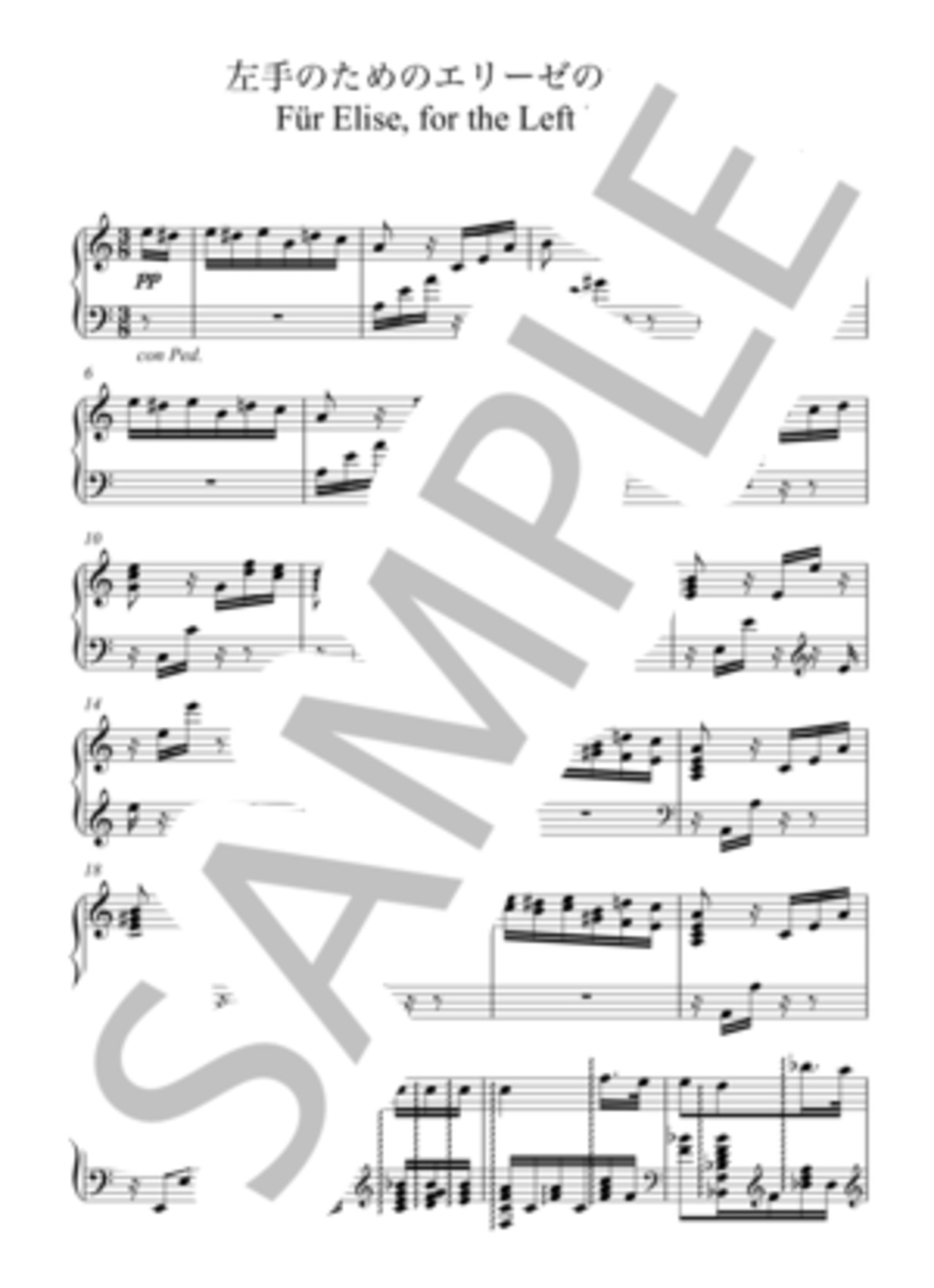【楽譜ダウンロード】左手のためのエリーゼのために(ベートーヴェン作曲、稲島早織編曲)